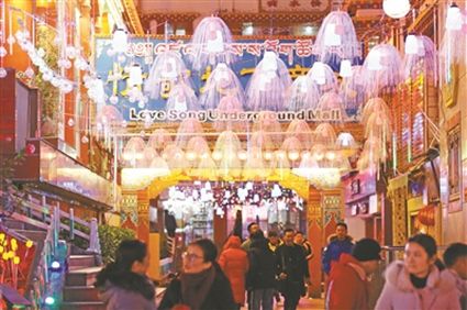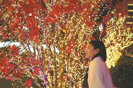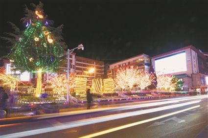 火樹銀花不夜天,流光溢彩呈繽紛。“今年的夜景真漂亮?。 蓖钒⒁毯偷窃鍪迨逋盹埡髱е鴮O女來(lái)到將軍橋散步,在自己的家鄉(xiāng)欣賞到如此美妙的景色,登增叔叔忍不住夸贊。此時(shí),將軍橋道路兩旁的綠化帶在彩燈的映襯下輪廓畢現(xiàn),與玻璃棧道上的光影交相輝映,城市美景盡在其中。