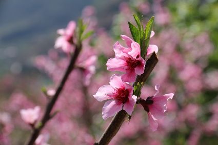 在瀘定縣冷磧鎮(zhèn)、德威鎮(zhèn)等地,桃花、油菜花及櫻花競(jìng)相開(kāi)放,一團(tuán)團(tuán)、一簇簇,綴滿枝頭,藍(lán)天、白云與各色花兒相交,金黃花海在微風(fēng)中起伏。一畦畦油菜花田錯(cuò)落有致、層次分明,綿延不斷?!岸聶鸦ㄩ_(kāi),三月桃花盛,四月紅櫻桃,五月水蜜桃?!背擞筒嘶ǎ磕觋?yáng)春三月,瀘定的桃花也隨著和煦春風(fēng)落滿枝頭滿樹(shù)的花芽沁著香氣,一點(diǎn)點(diǎn)溢到空氣中,香了春風(fēng),也香了整座城。