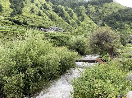 隨著海拔高度的升高與緯度的增加,一路上的植被類型也在不斷發(fā)生著變化。穿越深闊的暗針葉林,六匹馬起起落落的腳力踩出了一個馬幫的回音,所有的植物在各自的生命活動中散發(fā)出了清新怡人的芬多精,吉美為此小聲哼唱起了愉悅的歌兒,細聽卻又像是兩只云雀在不遠處鳴囀。再往上走,周遭的林木又轉(zhuǎn)換成了密致的高山杜鵑林,無數(shù)修長的木流蘇垂掛在樹枝上,像哈達。一路沉默的南杰轉(zhuǎn)頭來開始與我說話“六月間,這里的每一棵樹都開滿了粉白的花朵,一樹樹的煞是壯觀好看,我一個人經(jīng)過,總能聽到一朵、兩朵花鈍落的聲音。最初,我以為是馬雞飛落了,輕聲走入林中打探,身后又會落下一朵、兩朵花,那聲音厚重沉實,林中又過于安靜,我就慌忙走出了林子......”南杰說話聲音秀氣,我聽得時斷時續(xù),過風吹送著南杰話語中杜鵑花的香氣。前路逐漸敞亮起來的時候,路邊的杜鵑樹開始變得稀稀落落了,只見路旁堆壘著高高低低的新鮮柴垛。再往上就沒有樹木了,只有矮腳盤香和淺草,路邊的山包上緊貼著密密麻麻的貌似多肉植物的草葉,從草心抽出來一枝枝薔薇紅的花柱在風中頻頻點頭。雍貝在前方的馬匹上頭低得越來越沉,以為他瞌睡,我喊了聲貝,他回頭看我,面色灰白嘴唇有些發(fā)紫。南杰回望我們后一躍下馬,從路邊的淺草中折斷幾根盤香枝別在雍貝的耳際,說是可以抵御高反。剩余的兩根遞給我,細小的枝葉上積著一層薄薄地灰色粉塵,深嗅有松脂的清香氣味,安人心神。
