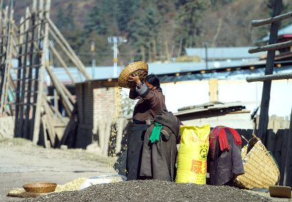 我想,擁有了清新質(zhì)樸的鄉(xiāng)野日子,就可以靜下心來。而事實(shí)上還是無法安下心來,一面想著山林的神秘,一面想著城市的熱鬧。寂寞無聲地穿過巷道,那個向陰的小二樓一如既往地昏暗。拉開麻布的窗簾,大多時候我會看見走在巷道里的老老少少、男男女女,他們背著柴禾,滿帶笑容,相互致意。他們的日子似乎充滿了無盡的樂趣,也充滿了幸福和陽光。上午十點(diǎn)的時候,陽光會滑過窗臺,轉(zhuǎn)瞬即逝,但陽光的確向小二樓袒露了它的無能為力。另一張桌子擺放著廚具,廚具上每天都會有新的灰塵堆積,盡管如此,它們依然發(fā)出青稞的馥郁之氣。