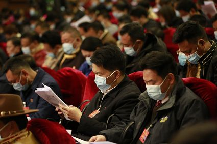 代表們認(rèn)真聽(tīng)取政府工作報(bào)告。