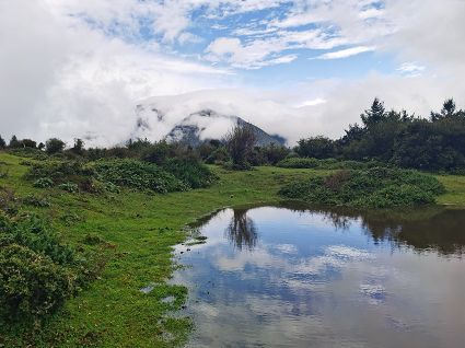 徒步過程中,可以俯瞰康定老城,眺望康定新城,遠望雪山,偶遇季節(jié)性小湖泊,沿途能看到各種康定的植物,還有機會認識各種野菜和野生菌。夏季,在大草壩經(jīng)常能遇到被放牧的牛馬,藍天白云下,青青的草地上,一幅田園牧歌的景致映入眼簾。冬天,雪中漫步,看遠處的雪山和茫茫的康定城,又有另外一種美。