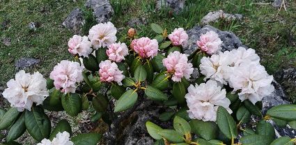 五色海下面不遠(yuǎn)處,有一大片杜鵑林,每年五月,林子里的杜鵑開(kāi)放了,去五色海的途中又多了一處美景。