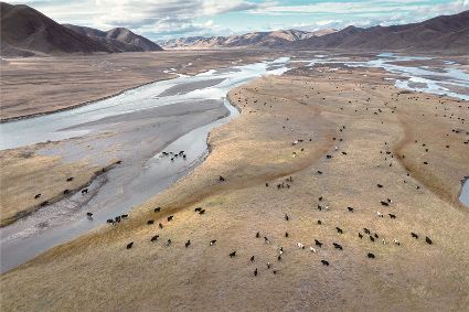 仿佛聽到了無人機(jī)下哞哞的牛群鳴叫,那一抹陽光來得正是時候,陽光送來的何止是溫情,還有一種催促前行的呼喚。