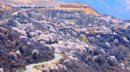 在巴塘縣的中咱鎮(zhèn)波浪村,有一片隱于山野的“世外桃源”。四月的暖陽,拂過千畝桃林,朵朵桃花惹美了眼,點綴在江河堤岸,盛開在春風十里。漫山遍野,落英繽紛,仿佛走進現實版的“青丘”!