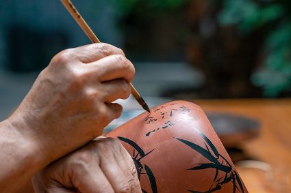生活在云南省紅河哈尼族彝族自治州建水縣碗窯村的徐榮洪是當(dāng)?shù)匦旒腋G的第五代制陶藝人,也是非遺建水紫陶燒制技藝的傳承人。 泥料制備、拉坯造型、濕坯裝飾、雕刻填泥、高溫?zé)啤o(wú)釉磨光……要想做出精良的紫陶工藝品,每個(gè)流程都需要潛心鉆研。“制作技藝環(huán)環(huán)相扣,某一道工序出現(xiàn)紕漏,燒出來(lái)就是瑕疵品?!?徐榮洪拿起刻刀,對(duì)陶坯表面開(kāi)始進(jìn)行雕刻。 今年57歲的徐榮洪小時(shí)候就跟著長(zhǎng)輩上山挖陶泥,多年來(lái)堅(jiān)持鉆研建水紫陶的制作技藝。 徐榮洪介紹說(shuō),作為紫陶藝人,以陶為紙,根據(jù)器型將不同的文化與藝術(shù)形式注入其中,使其具有無(wú)限活力。非遺文化閃爍著人類智慧的光芒,也承載著人們心底的情思鄉(xiāng)愁。