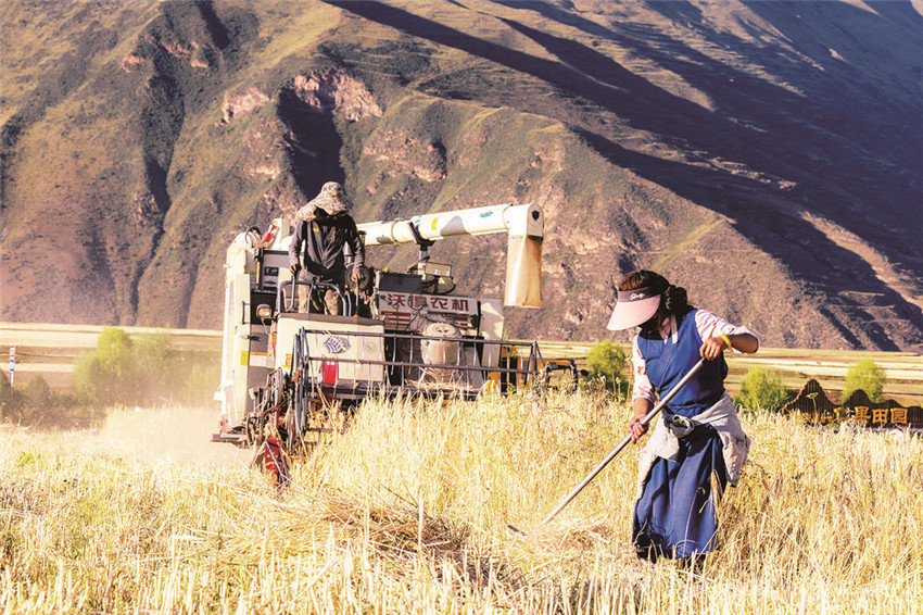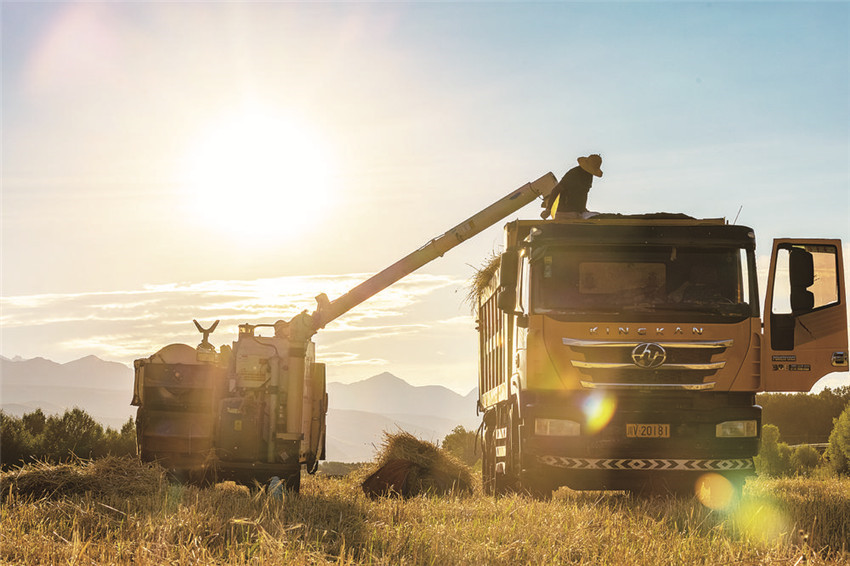甘孜縣是我州的農(nóng)業(yè)大縣,也是全國青稞商品糧基地之一,素有“康北糧倉”的美譽(yù)。日前,在甘孜縣仁果鄉(xiāng)青稞收割現(xiàn)場,一望無垠的田地里麥浪滾滾、麥香四溢,一臺臺聯(lián)合收割機(jī)在金色的青稞地里來回馳騁,時(shí)不時(shí)停下來“吐出”金燦燦的青稞,農(nóng)戶們的臉上露出豐收的喜悅笑容。
