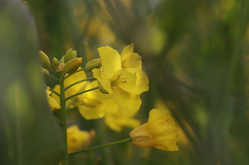 金黃的油菜花美美地填滿(mǎn)了整片田野,與藍(lán)天白云、村落人家相映成趣。順著田埂漫步花海,花香四溢,沁人心脾。微風(fēng)吹來(lái),一朵朵油菜花在風(fēng)中搖曳,嬌嫩的花蕊隨風(fēng)飄動(dòng),仿若身著金黃色輕紗的少女在翩翩起舞,靈動(dòng)迷人。在花叢中飛舞的蜜蜂為花田增添了靈動(dòng)和生氣,一掃冬日的沉悶,帶給人明快舒朗的好心情。成片盛開(kāi)的油菜花與前來(lái)賞花的游人相映成趣,游人們拿出手機(jī)、相機(jī),尋找最佳的角度,定格醉人美景,讓人忍不住贊嘆:好一番田園美景。