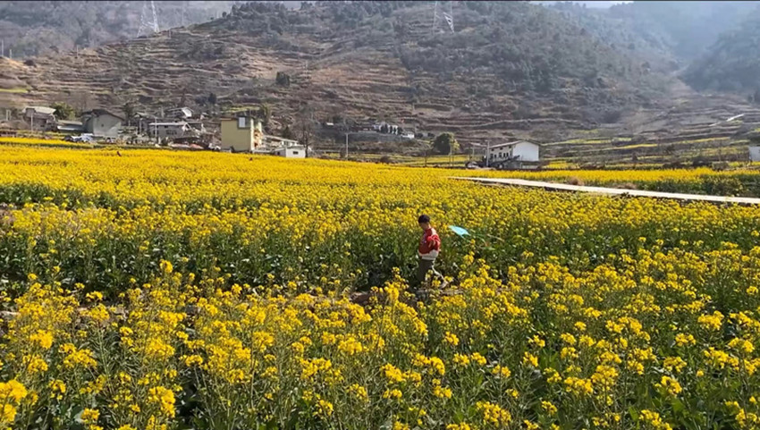 在距離瀘定縣城20多公里的德威鎮(zhèn)田壩村,成片的油菜花迎著春陽(yáng)連綿盛開(kāi),目之所及盡是芳菲,猶如彩色地毯披覆鄉(xiāng)間,勾勒出一幅產(chǎn)業(yè)興旺、生態(tài)宜居、鄉(xiāng)村振興的秀美畫(huà)卷,成為瀘定鄉(xiāng)村靚麗的風(fēng)景線(xiàn)。