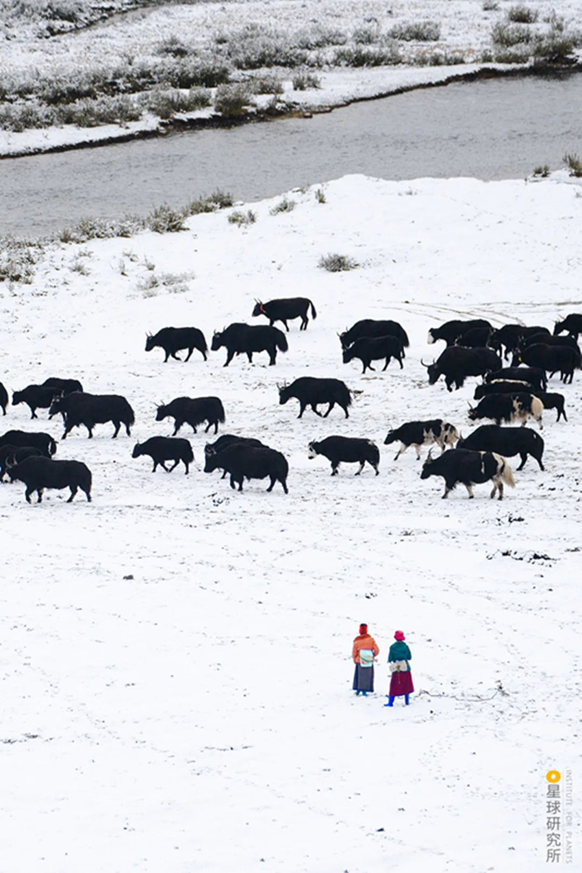 高原上定居不易而自然還有更多的考驗(yàn),高寒貧瘠的土地,山脈阻隔的交通,峽谷中蓄勢(shì)的山洪,斷裂帶上頻繁的震顫,隨時(shí)都可能給人們的生活籠罩上一層陰影。所幸從古至今,不斷地適應(yīng)、不斷地創(chuàng)造,成為了這片人間的底色。為了抵御高原的寒冷,人們用山羊等動(dòng)物皮毛織起布匹,縫制寬袍長(zhǎng)袖的袍子,發(fā)展出特色鮮明的藏裝;為了對(duì)抗物產(chǎn)的貧瘠,人們飼養(yǎng)牦牛,從牦牛奶、牦牛肉中獲取營(yíng)養(yǎng),用牦牛毛織成的布料做帳篷,點(diǎn)燃牦牛糞生火。