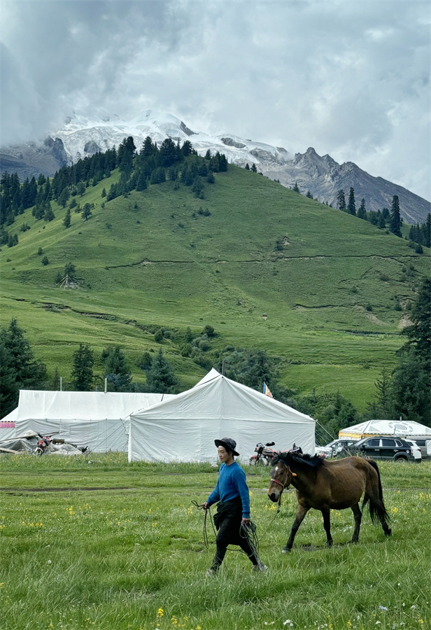 不管然日卡村還是則巴村,村民的勤勞善良也一樣讓人印象深刻。然日卡村的藏族姑娘丁真拉珍剛過18歲,卻經(jīng)常像個將軍去山上放牧和指揮100多頭牦牛,如果時間允許,她還去挖蟲草和松茸,但同時又在村里當(dāng)旅游向?qū)ВT上摩托、牽上馬匹帶游客四處參觀,每天忙得不亦樂乎;同樣是然日卡村的小伙澤仁剛?cè)⒘宋棠饭媚?,他們從傳統(tǒng)的放牧中抽身出來,與村里許多年輕人一樣,一心一意打造鄉(xiāng)村民宿,用勤勞的雙手走上了一條嶄新的致富路;而則巴村的帥小伙甲他,今年也在村子里建起了屬于他們一家的“奔然甲他”民宿,奔然是村前一座小山的名字,甲他相信他們的日子一定如山一般堅實越過越好。