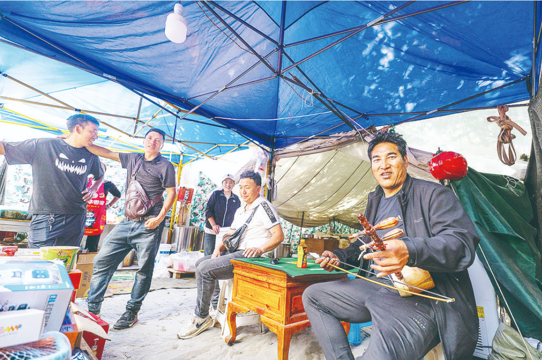 夏邛鎮(zhèn)村民益西一大早就在龍王塘忙碌著,洗菜、切菜、搟面......“又是一年‘央勒節(jié)’,今年還是和往年一樣,一邊過‘央勒節(jié)’,一邊賣冒面。”他將藍(lán)色帳篷簡單劃分成休息區(qū)、餐食區(qū)、廚房區(qū)3個區(qū)域,“上午準(zhǔn)備好食材,下午和大家一起迎‘央勒’?!?/p>