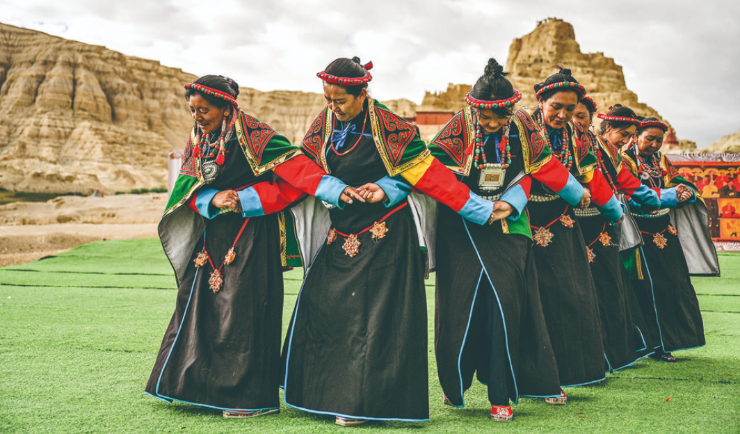 “宣舞”起源于札達縣,是西藏阿里民間傳統(tǒng)舞蹈?!靶琛比诤喜貞颉⑽璧?、說唱等主要的藏民族民間藝術(shù),內(nèi)容涵蓋藏民族宗教、禮儀、風(fēng)俗、節(jié)慶等各方面的內(nèi)容。2008年,“宣舞”入選第二批國家級非物質(zhì)文化遺產(chǎn)名錄。