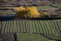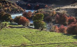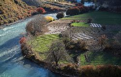 金沙江流經(jīng)四川省巴塘、得榮等縣時(shí),支流眾多,高山峽谷之間形成眾多緩坡和平地,氣候高溫、低濕,干燥晴朗。雖進(jìn)入初冬,但這里彎彎的河流長流不息、樹木染色、田地漸綠,一片迷人的河谷田園風(fēng)光。