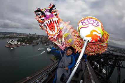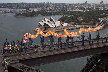 當(dāng)日,由當(dāng)?shù)厝A人團體精心準備的中國傳統(tǒng)舞龍亮相悉尼海港大橋,拉開中國新年慶?;顒拥男蚰弧?/span>