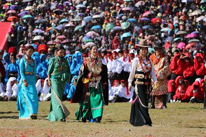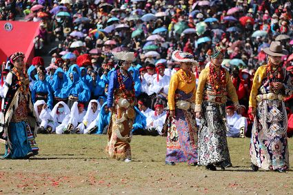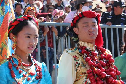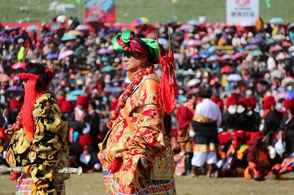 于是,年復(fù)一年,“漢子”與“花”兒們便挺拔、綻放在漢語表達(dá)的一個極點(diǎn)之上,被玄想,被渴望。對遠(yuǎn)道而來的人們或是世代居于高原的子民而言,康巴漢子與康巴之花不僅僅是美的化身,通過康巴漢子與康巴之花的評比,人們在尋找一個早已失落卻又天然渾成的世界。