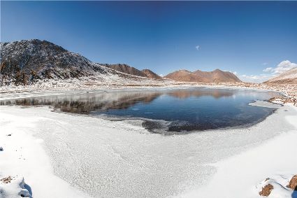 對常年生活在這片土地上的人們來說,一夜便能厚積沒履的大雪早已見慣不驚,但走出縣城一瞥石渠秋日的雪景,依舊讓人不由驚嘆大自然的鬼斧神工。不似平原、丘陵之妖嬈,石渠的雪景是宏偉壯麗的、是氣勢磅礴的,置身其中頓感渺小,心中唯余對自然之敬畏。在25191平方公里的土地上,無論草原或是山巒,入眼皆是一片耀眼的銀白,在頭頂萬里無云的湛藍天空的輝映下,整個石渠只剩干凈的藍和純潔的白。