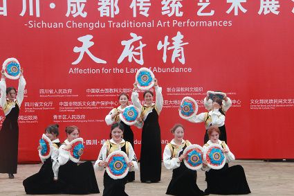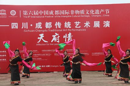 到處都是炫麗的色彩,到處都有神秘的傳承,6月10日,第六屆成都國際非遺節(jié)在成都拉開帷幕。當天下午2時,一場我州特有的文化大戲在成都非遺博覽園西城事廣場上演。我州石渠真達鍋莊隊在此激情演繹,他們揮舞長袖,翩翩起舞,讓前來游覽的觀眾贊不絕口。