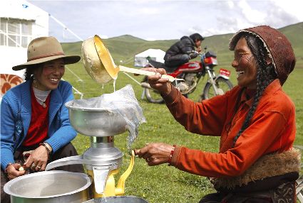 67年來,在黨中央、國務(wù)院和省委、省政府的關(guān)心關(guān)懷下,在黨的民族政策的光輝照耀下,各民族共同團(tuán)結(jié)進(jìn)步、共同繁榮發(fā)展,甘孜大地發(fā)生了翻天覆地的變化。以機(jī)場(chǎng)、公路為主的交通網(wǎng)絡(luò)正在形成,雅康高速公路即將通車,城市鄉(xiāng)村、藏家村寨舊貌換新顏,甘孜大地處處生機(jī)盎然,各族人民生活比蜜還甜。