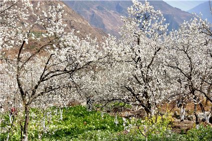 陽(yáng)春三月,瀘定陽(yáng)光明媚,到處生機(jī)盎然。大渡河畔的杵坭、田壩等地櫻桃花在田間競(jìng)相綻放,一團(tuán)團(tuán),一簇簇,一朵朵潔白的花兒緊緊簇?fù)碇?,綴滿枝頭。一陣陣微風(fēng)吹來(lái),櫻桃花隨著枝條在風(fēng)中輕盈地?fù)u曳。