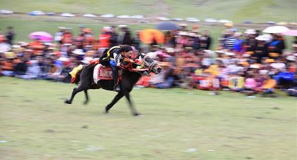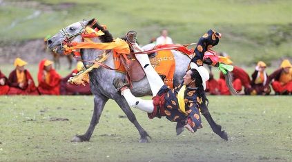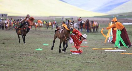 7月23日,四川甘孜藏族自治州理塘縣村戈鄉(xiāng)賽馬活動開始,牧民們在馬背上一顯身手。每年藏歷六月,當草原上格桑花盛開的時候,四川省理塘縣24個鄉(xiāng)(鎮(zhèn))就會按照習俗舉辦隆重的賽馬會來拜祭神山,慶祝豐收。迄今有400多年歷史的賽馬分為耐力賽、小走賽、馬術賽等,其中最為精彩的是馬術賽:馬肚藏身、馬背倒立、飛騎射擊、拾哈達等,驚險刺激。2008年6月,此項活動被列入四川省級非物質文化遺產保護項目。(朱虹 葉強平)
