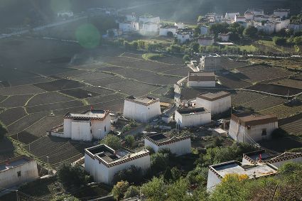 果實滿枝頭、莊稼堆糧倉、新村新貌。金風送爽的十月,走進香巴拉鄉(xiāng)城,隨處可見農(nóng)牧民群眾脫貧后的喜悅與感動。