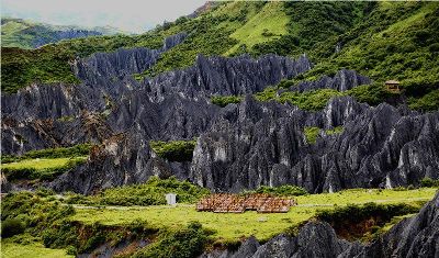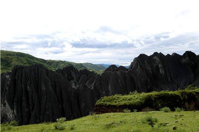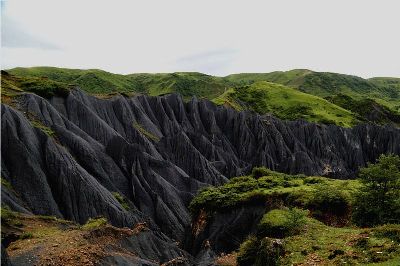 墨石公園,是中國唯一高原石林景觀,被譽(yù)為“中國最美景觀大道第八美 ”。受第四紀(jì)新構(gòu)造運(yùn)動影響,隨著青藏高原的隆起,鮮水河斷裂帶中的巖石受到擠壓、剪切、破碎、糜化,形成糜棱巖石林。石林含丐鹽,受空氣濕度影響,干燥季節(jié)呈淺灰色、淺藍(lán)色,濕潤季節(jié)呈滄黑色,因此又稱之為變色石林。