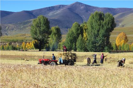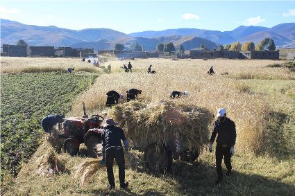 “我們要利用這段晴好的季節(jié),抓緊收割?!痹趶V袤的原野,村民們開(kāi)鐮收割青稞,一輛輛滿(mǎn)載成捆青稞的拖拉機(jī)在田間和鄉(xiāng)村小道上歡快地疾馳。