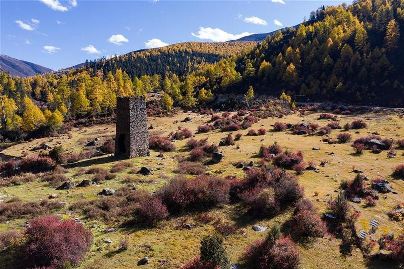 深秋時(shí)節(jié),晴空、群山、秋葉在高原清澈的天光下勾勒出川西鄉(xiāng)城縣一幅幅美麗畫卷。