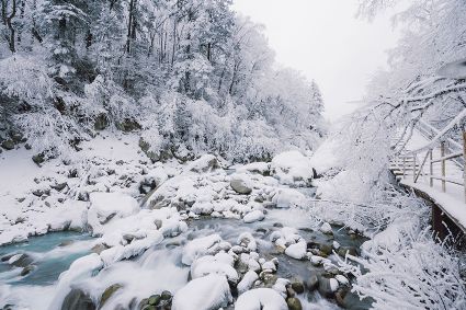 在寒冬來到海螺溝,一邊泡溫泉一邊賞雪山,在熱呼呼的天然溫泉里欣賞雪花漫天飛舞的奇景,何其浪漫。在冰天雪地里泡溫泉,周圍一派銀裝素裹,泡在池中卻是溫暖的,思緒隨著雪花從無極的天幕中飄灑下來,在空中徐徐飛舞,雪花落在溫暖的肌膚上,沁人心脾,天地的神韻、造化的奇巧,便在這一剎那融為了一體。