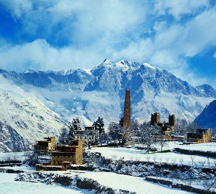 白雪皚皚,窗明幾凈,陽光從高山傾瀉而出。丹巴正沐浴著冬日的陽光,一幢幢外形美觀,風格統(tǒng)一的寨房依著起伏的山勢迤儷而建,高高低低,錯落有致,與周圍清澈的溪流,皚皚的雪峰,構成一幅田園牧歌式的優(yōu)美的鄉(xiāng)村畫卷。