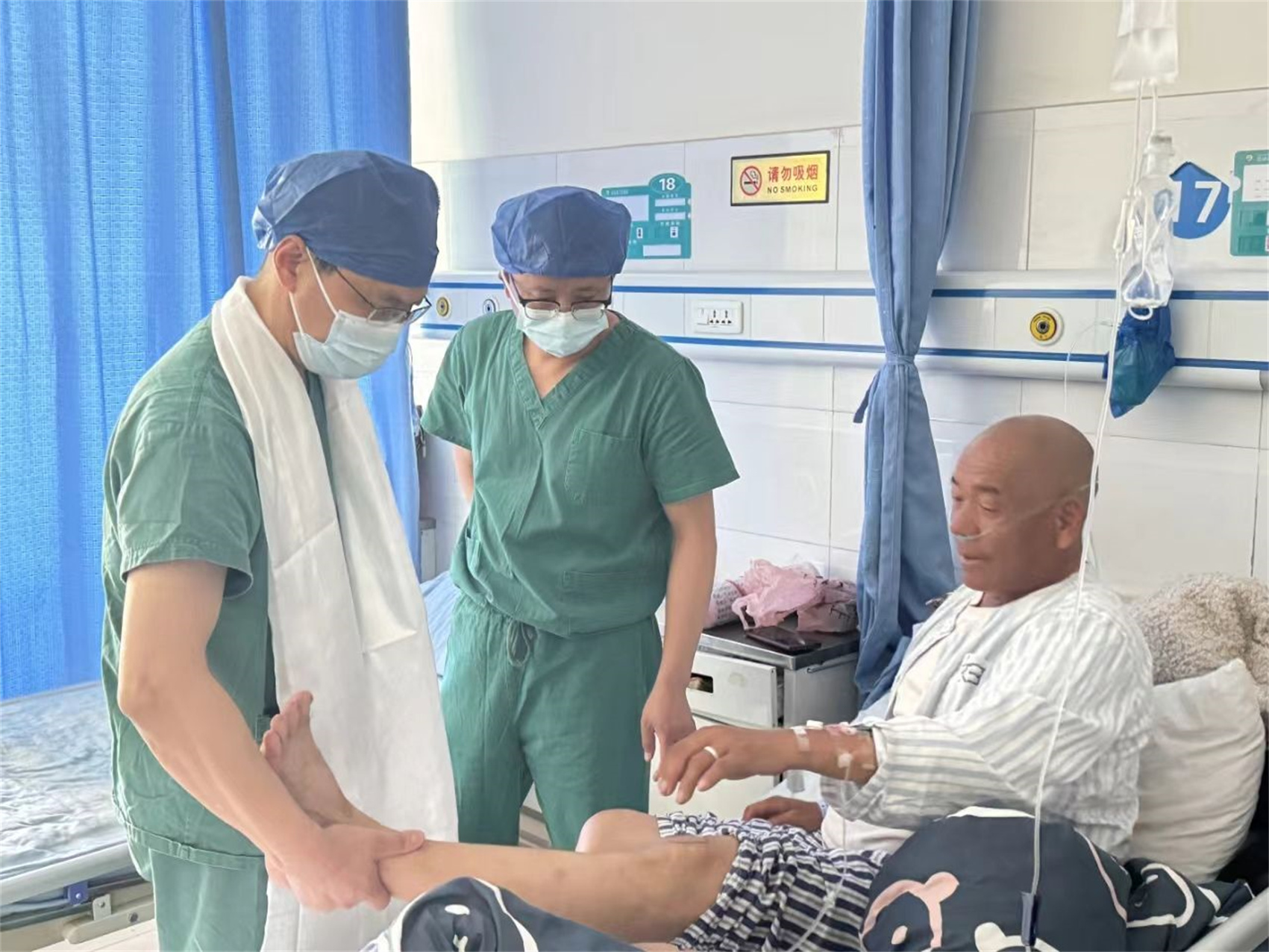 病房里和李秀文同樣幸運的還有60歲的拉空登巴大叔,登巴大叔被膝關(guān)節(jié)疼痛困擾多年,雙腿膝關(guān)節(jié)變形,上下樓梯時痛感會更加明顯。當(dāng)天一大早,登巴大叔就從家里趕到縣醫(yī)院,做術(shù)前準(zhǔn)備?!昂荛_心,我滿足了手術(shù)條件,希望手術(shù)順順利利!”登巴大叔激動地說。
