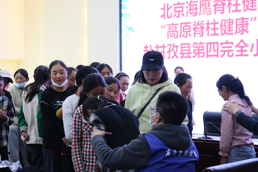 日前,北京海鷹脊柱健康公益基金會(huì)“高原脊柱健康”醫(yī)療專家團(tuán)隊(duì)到甘孜縣小學(xué),為孩子們逐個(gè)進(jìn)行脊柱篩查和診斷,其中有31名輕微脊柱側(cè)彎的學(xué)生、5名重度脊椎側(cè)彎患者納入赴京手術(shù)名單。圖為醫(yī)護(hù)人員正在篩查。 甘宣 攝影報(bào)道