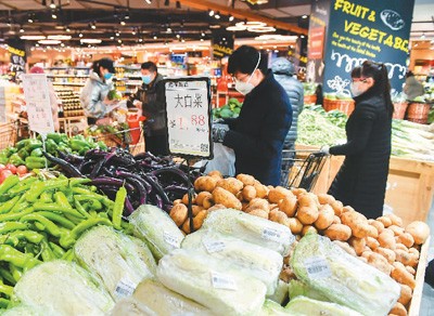 在吉林長春一家大型連鎖超市,市民在選購蔬菜。