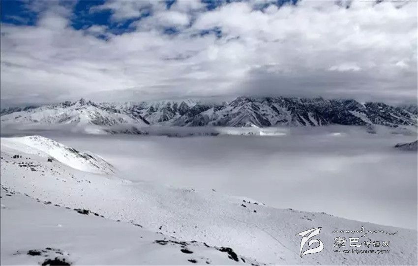 雪山在云霧之中呈現(xiàn)出全貌,寧?kù)o而莊嚴(yán)地立于世界的這一端。