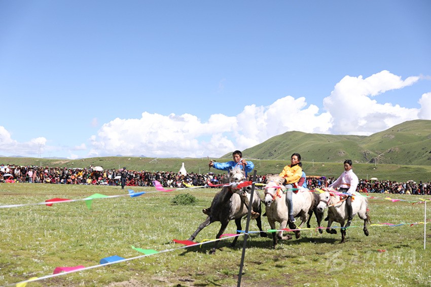 馬尼干戈鎮(zhèn)全境橫貫國(guó)道317線,是德格典型的純牧業(yè)鄉(xiāng)鎮(zhèn),轄區(qū)內(nèi)地廣人稀,草場(chǎng)豐富,有著十分豐富的牧俗文化,“西天瑤池”玉隆拉措也坐落于此。每年的7月底8月初舉行的賽馬節(jié),是當(dāng)?shù)刈顬槁≈氐膫鹘y(tǒng)民族節(jié)日之一。在雪域高原上綠草如茵、各類鮮花爭(zhēng)相斗艷的最美時(shí)節(jié),牧民們會(huì)身著華麗的藏裝,自發(fā)聚集在一片開闊的草場(chǎng)上,搭帳篷、唱歌跳舞,并開展賽馬、賽牦牛、賽跑和馬技表演、趣味游戲等民俗民間活動(dòng),增進(jìn)相互之間的感情,促進(jìn)鄰里和睦。