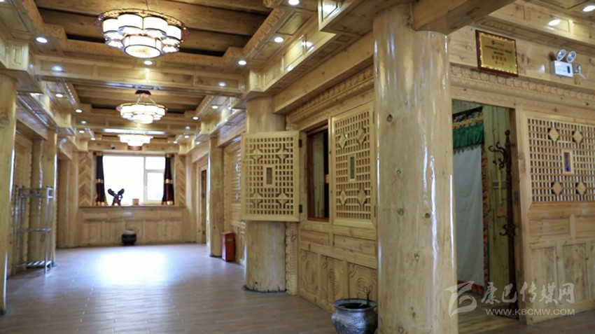 這幢民“居”之所以是“宿”,是因為它的底層被設計建造成為了11間客房,安裝現(xiàn)代化設施后用于旅游接待。而二樓則為臥室、經(jīng)堂、客廳、貯藏室、廚房、走廊和陽臺等,在建造中最難的一道工序便是室內(nèi)裝修的雕刻和繪畫,此二門藝術可謂“崩科”之精華所在,極具康巴文化特色。