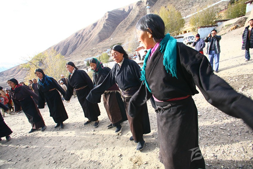 弦子又名為“協(xié)”,在甘孜縣境內(nèi)有孔薩協(xié)欽、仲薩協(xié)、格達(dá)協(xié)、郎扎協(xié)等,其中白利寺五世格達(dá)活佛創(chuàng)建于二十世紀(jì)三、四十年代的格達(dá)弦子尤為著名,跳此舞無(wú)時(shí)間規(guī)定。起初用此歌祭祀亡魂、超度靈魂、免荒災(zāi)。以后逐漸豐富其內(nèi)容而流傳于民間。表演時(shí)無(wú)伴奏樂器,起舞時(shí),男女兩隊(duì)輪歌共舞,圍成圓圈,相對(duì)而立,男女舞者統(tǒng)一著樸素藏裝,男舞者抬頭,頭戴金氈帽, 身著“氆氌”衣,但不配戴腰刀;女舞者低頭,扎小辮子,身著“氆氌”衣,腳穿藏鞋,沿著弧線,先慢后快,邊歌邊舞,舞蹈的腳步動(dòng)作矯健,帶有“夏卓”的風(fēng)韻。格達(dá)活佛的詩(shī)歌,具有藏族文學(xué)的新內(nèi)容和新思想,每當(dāng)節(jié)日人們就在優(yōu)美的旋律中盡情起舞,格達(dá)弦子的詞、曲均由格達(dá)活佛創(chuàng)作。