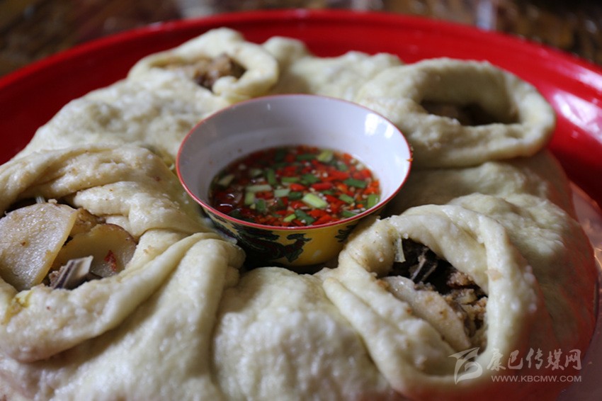 但是,家用的籠屜小,蒸出的數(shù)量有限,為了讓戰(zhàn)士們夠吃,婦女們就借來大籠屜,將包子做得更大,軍民共食蒸肉,暢敘友情。為了表達軍民魚水情,大家把蒸肉稱為“團結(jié)包子”。從此,“團結(jié)包子”這個涵蓋著軍民一家親意義的名字就延續(xù)下來。十八軍進藏路過巴塘時正值端午節(jié),自此,每年端午節(jié),巴塘城區(qū)家家戶戶都要吃“團結(jié)包子”,以此紀念十八軍進藏,也意寓全家團團圓圓。