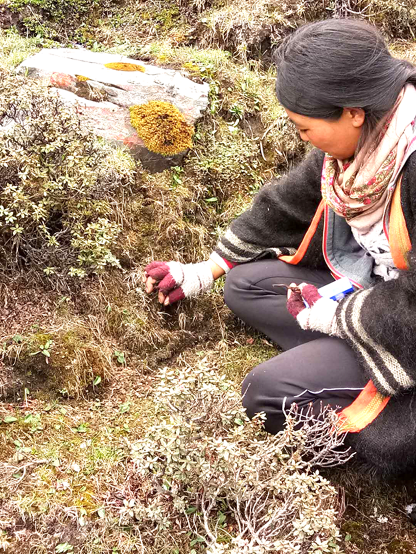 銀珠做完這個莊重的祈禱儀式,才從包里取出一個裝糖豆的鐵盒子,小心地將它放進盒子蓋上,揣進衣兜里。她重新埋好挖出的土,接著爬向了一叢叢小杜鵑,它們散發(fā)著淡淡的苦澀味,使她放慢了爬行的速度,細細尋找著干草木葉中的那些獨特菌類。她的手和膝蓋被雪水浸濕了,也不覺寒冷,自己像是其中的一種生靈。不一會兒,她就看到了好幾只蟲草的尾巴露在草皮上,它們的樣子分明是在歡喜奔跑,見到有人靠近倏忽間就停止下來了,令她忍不住發(fā)出了噗嗤一聲笑。南吉聽到這聲音,抬頭朝銀珠的方向看去,只見滿山的花草都在微風中輕輕顫動。南吉看到銀珠許久沒有挪動,便知道她找到了自己的纖草堂子……