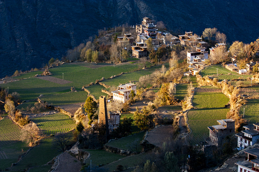 丹巴,無論在深山峽溝,還是在田間林園,藏房路口隨處可見高大的古碉以及殘垣斷墻的碉址遺跡,這一切蘊含著多么大的勞動量。殘酷的年代,先民們赤腳背石,手抓繩索,一石一泥,一檁一椽,日復一日,年復一年,一點點背上去,一寸寸砌起來。這樣可敬的古碉,它的每一個角、每一塊石頭、每一鏟泥巴,都是先民們用汗水所鑄,同時也寫下了藏民建筑史上光輝的歷史。
