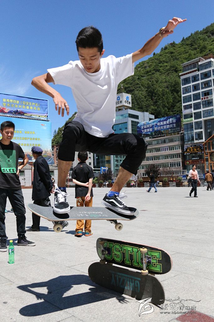 提到極限運(yùn)動(dòng),你首先會(huì)想到什么?直排輪、空中沖浪、跑酷、攀巖……它們中很多都由滑板延伸而來,因此滑板又被稱為極限運(yùn)動(dòng)的“鼻祖”。在康定,有這么一群年輕人,他們每到暑假,每天都會(huì)在情歌廣場集合,踏上滑板、踩上輪滑挑戰(zhàn)一個(gè)個(gè)“不可能的任務(wù)”。一身肥大的T恤牛仔,夸張的金屬耳釘、項(xiàng)鏈、手鏈、戒指,和著動(dòng)感十足的Hip-Hop音樂,踩著滑板在障礙之間穿梭,間或穿插幾個(gè)高難度花式動(dòng)作,引得觀眾此起彼伏地喝彩尖叫……這是很多人印象中滑板、滑輪小子的形象。但當(dāng)賀淼、謝明洋、陳凱他們出現(xiàn)在記者面前時(shí),簡單的裝束真有點(diǎn)讓記者意外。他們的身上幾乎不見任何首飾,普通的T恤加瘦版牛仔褲,還有頭上簡單的鴨嘴帽, “Hip-Hop” 前衛(wèi)的影子并不明顯。