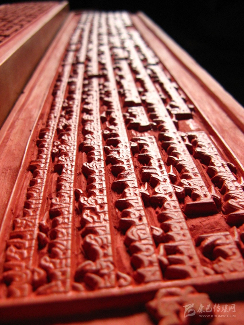 公元1730年2月3日,正式在倫珠頂開(kāi)始進(jìn)行校對(duì)和雕刻工作。為了提高印版的質(zhì)量,土司規(guī)定實(shí)行三級(jí)審校制度,即書(shū)法家們負(fù)責(zé)對(duì)寫(xiě)好的版文進(jìn)行兩校,以便及時(shí)修改錯(cuò)漏。然后經(jīng)編審師們復(fù)審和終審后,方可交刻工雕刻??掏旰?,編審師們?cè)谇鍢由线€要進(jìn)行三校。版面改動(dòng)較多的進(jìn)行重刻,改動(dòng)較少的進(jìn)行補(bǔ)刻。規(guī)定的校次不準(zhǔn)任意減少或改動(dòng)。雕刻工作由噶瑪班珠和次白總負(fù)責(zé)。經(jīng)過(guò)60多名書(shū)寫(xiě)員、10名編審師、400余名刻工以及100多名雜工的艱苦勞動(dòng),浩繁的《甘珠爾》刻版工程于在公元1734年完成。印版所用經(jīng)費(fèi),折成茶塊共計(jì)7622包(每包約20公斤)。