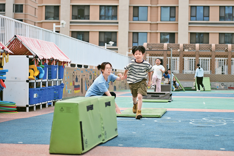 近年來(lái),河北雄安新區(qū)通過(guò)創(chuàng)新教育發(fā)展體制機(jī)制、高標(biāo)準(zhǔn)配建教育設(shè)施、引入專業(yè)教師隊(duì)伍、引進(jìn)優(yōu)質(zhì)教育資源等方式,不斷推動(dòng)教育高質(zhì)量發(fā)展。圖為2024年5月23日,當(dāng)?shù)赜變簣@的孩子們?cè)谑彝饣顒?dòng)。 新華社記者 牟宇/攝