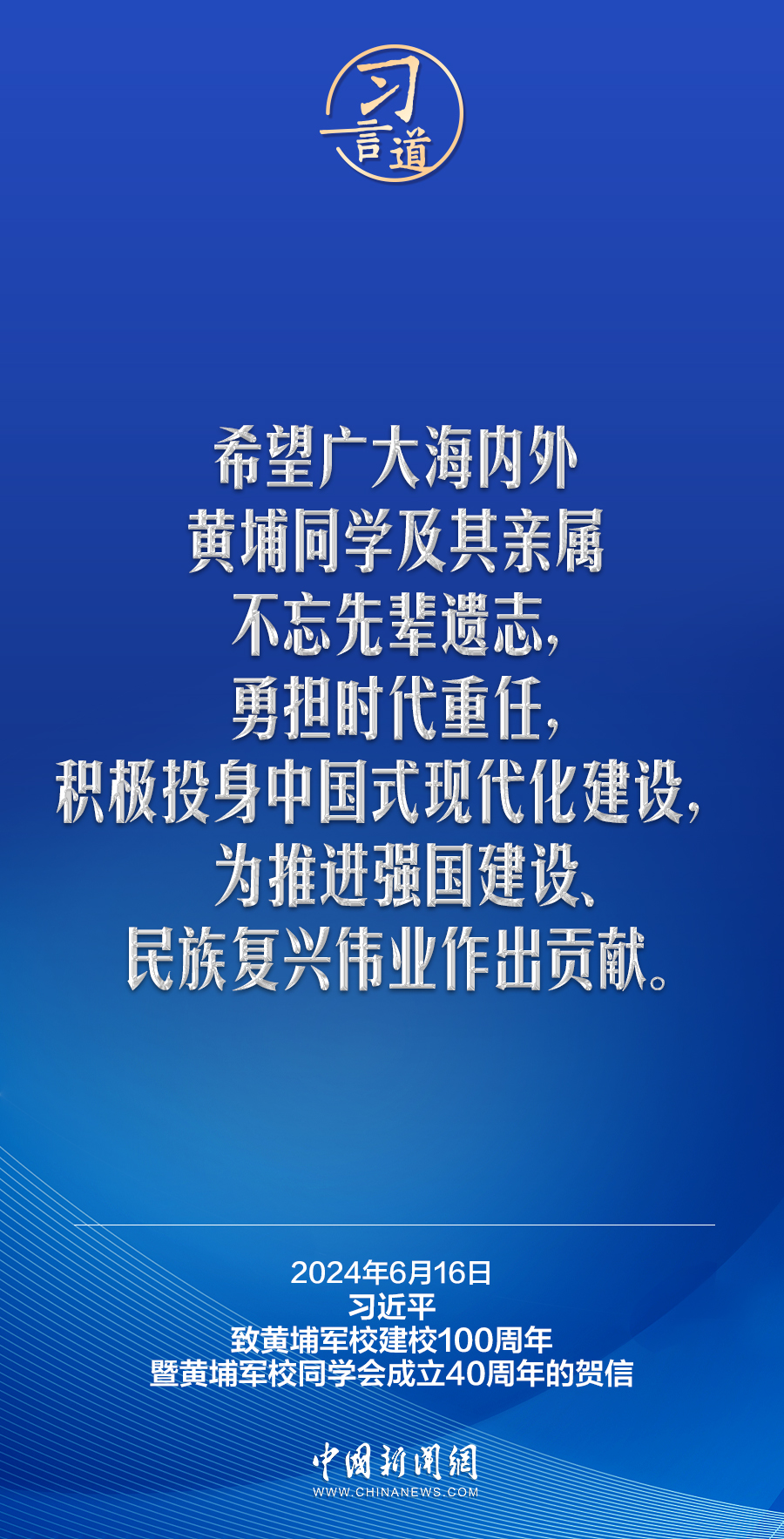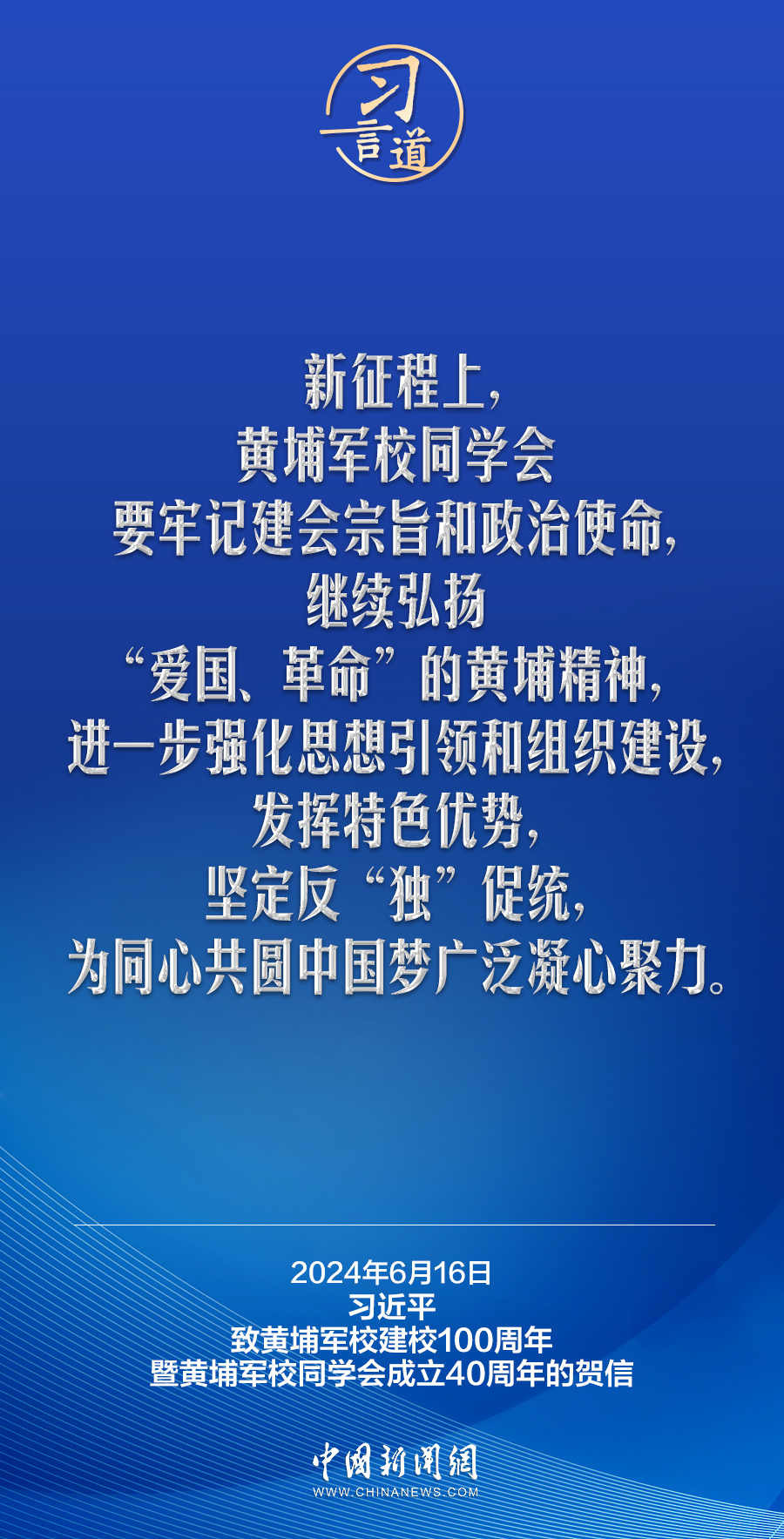 在黃埔軍校建校100周年暨黃埔軍校同學會成立40周年之際,中共中央總書記、國家主席、中央軍委主席習近平發(fā)來賀信,代表中共中央向黃埔軍校同學會表示熱烈祝賀,向廣大海內(nèi)外黃埔同學及其親屬致以誠摯問候。習近平指出——