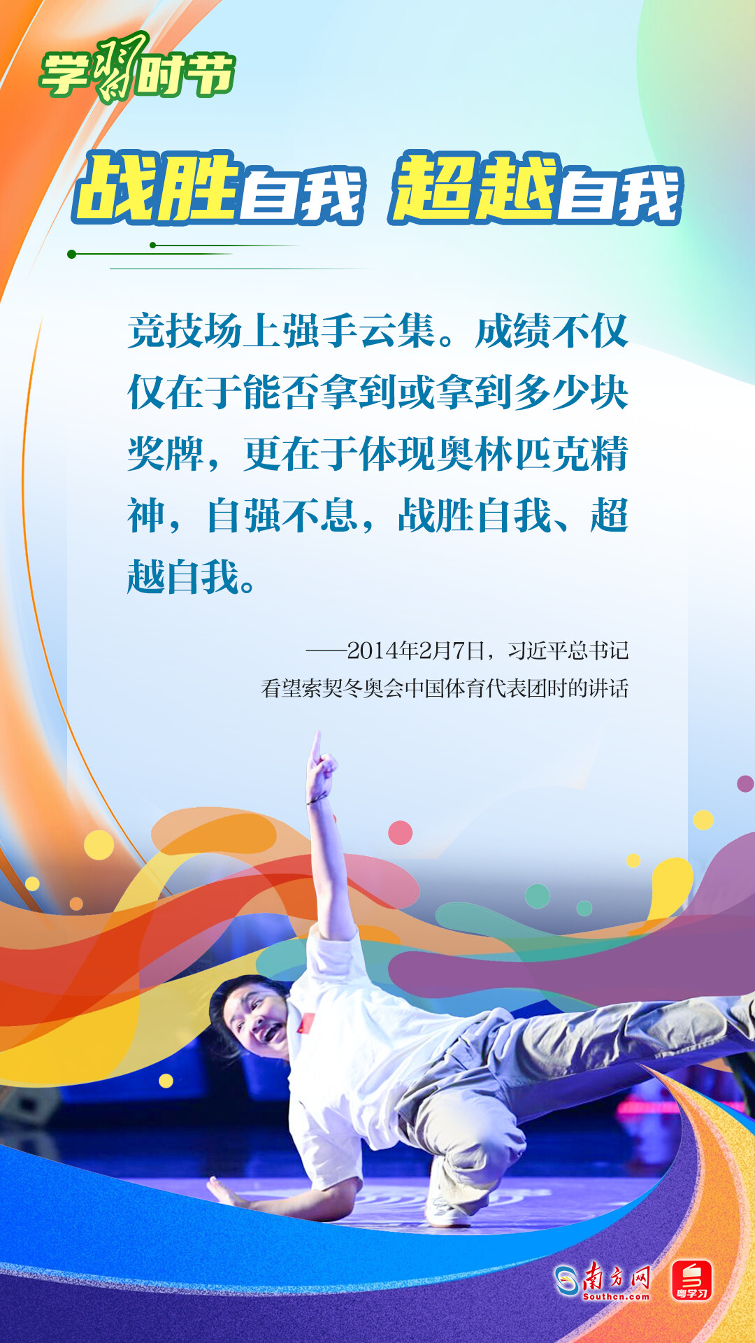 “我們不以勝負(fù)論英雄,同時(shí)英雄就要敢于爭先、敢于爭第一。”習(xí)近平總書記曾在不同場合論述奧林匹克精神,深刻闡明了勝與負(fù)、成與敗的辯證關(guān)系,對奧林匹克“更快、更高、更強(qiáng)——更團(tuán)結(jié)”的格言進(jìn)行詮釋。讓我們一同學(xué)習(xí)習(xí)近平總書記對奧林匹克精神的重要論述,心懷夢想、奮勇拼搏,攜手走向美好明天。