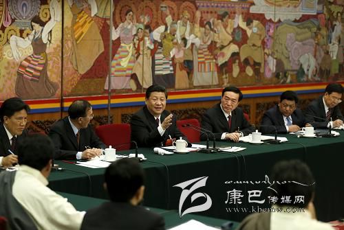 圖為:2013年3月9日,習(xí)近平參加十二屆全國人大一次會(huì)議西藏代表團(tuán)的審議。