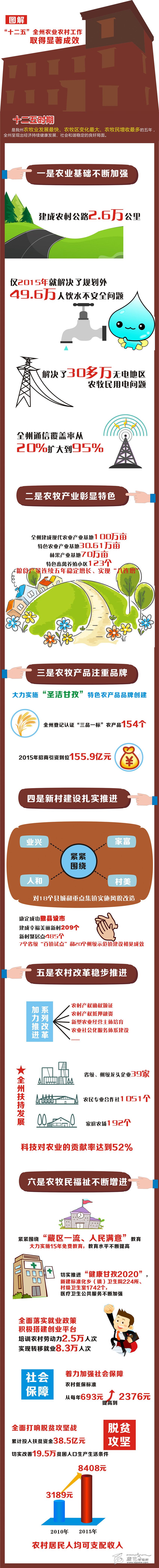 糧食產(chǎn)量連續(xù)五年穩(wěn)定增長、實現(xiàn)“八連增”;農(nóng)村居民人均可支配收入從2010年的3189元增長到2015年的8408元;建成幸福美麗新村209個,新村聚居點485個,7個省級“百鎮(zhèn)試點”和20個州級示范鎮(zhèn)建設(shè)初見成效;農(nóng)村產(chǎn)權(quán)確權(quán)頒證、農(nóng)村產(chǎn)權(quán)抵押融資、新型農(nóng)業(yè)經(jīng)營主體培育、農(nóng)村社會化服務(wù)體系建設(shè)等系列改革加力推進……