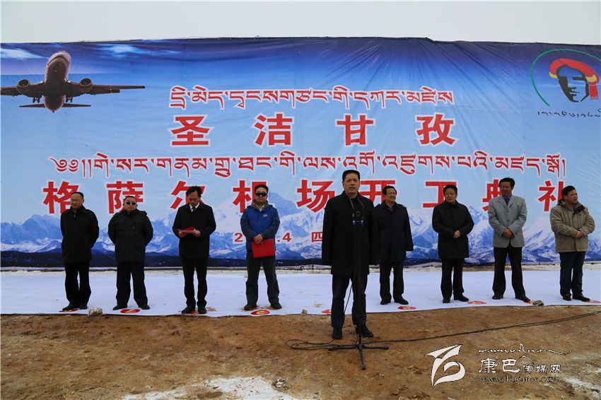 益西達(dá)瓦在致辭中指出,甘孜格薩爾機(jī)場是繼康定機(jī)場、稻城亞丁機(jī)場之后,我州建設(shè)的第三個機(jī)場,項目投資22.88億元,力爭2017年10月建成試飛。甘孜格薩爾機(jī)場的開工建設(shè),是我州實(shí)施“交通先行”戰(zhàn)略的重大舉措,對進(jìn)一步加快我州經(jīng)濟(jì)社會全面協(xié)調(diào)可持續(xù)發(fā)展具有十分重要的意義。該機(jī)場的建成,必將開啟我州“十三五”發(fā)展的新征程,必將推動我州經(jīng)濟(jì)社會實(shí)現(xiàn)新跨越,必將促進(jìn)我州旅游等產(chǎn)業(yè)實(shí)現(xiàn)新發(fā)展,必將加快我州農(nóng)牧民群眾脫貧奔康的新步伐。他說,建設(shè)甘孜格薩爾機(jī)場是全州人民特別是北路群眾多年的期盼,機(jī)場規(guī)劃在“十一五”、爭取在“十二五”、建設(shè)在“十三五”,飽含著中央領(lǐng)導(dǎo)和國家部委的厚愛,體現(xiàn)著省委、省政府的重視,凝聚著歷屆州委、州政府的心血,我們一定要倍加珍惜,一定要把甘孜格薩爾機(jī)場建設(shè)成一流的高原機(jī)場。希望甘孜、德格兩縣通力合作、協(xié)調(diào)配合,切實(shí)為機(jī)場建設(shè)營造良好的外部環(huán)境;希望州級相關(guān)部門簡化程序、搞好服務(wù),切實(shí)為該機(jī)場建設(shè)開辟“綠色”通道;希望廣大人民群眾多理解、多支持,切實(shí)擁護(hù)機(jī)場的各項建設(shè);希望各參建單位和廣大建設(shè)者發(fā)揚(yáng)“亞丁機(jī)場精神”,努力把甘孜格薩爾機(jī)場建設(shè)成為一流的標(biāo)桿工程。