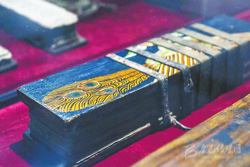 在展覽現(xiàn)場(chǎng),擺放著一些格薩爾的藏文文獻(xiàn)資料,與傳統(tǒng)漢語(yǔ)古籍裝幀不同,藏文典籍主要采用梵夾裝形式,俗稱長(zhǎng)條本。此次展出的包括格薩爾梵夾裝的手抄本、伏藏本、木刻本以及近六十年來(lái)正式出版的各種圖書等等,囊括了數(shù)百部格薩爾王史詩(shī)。